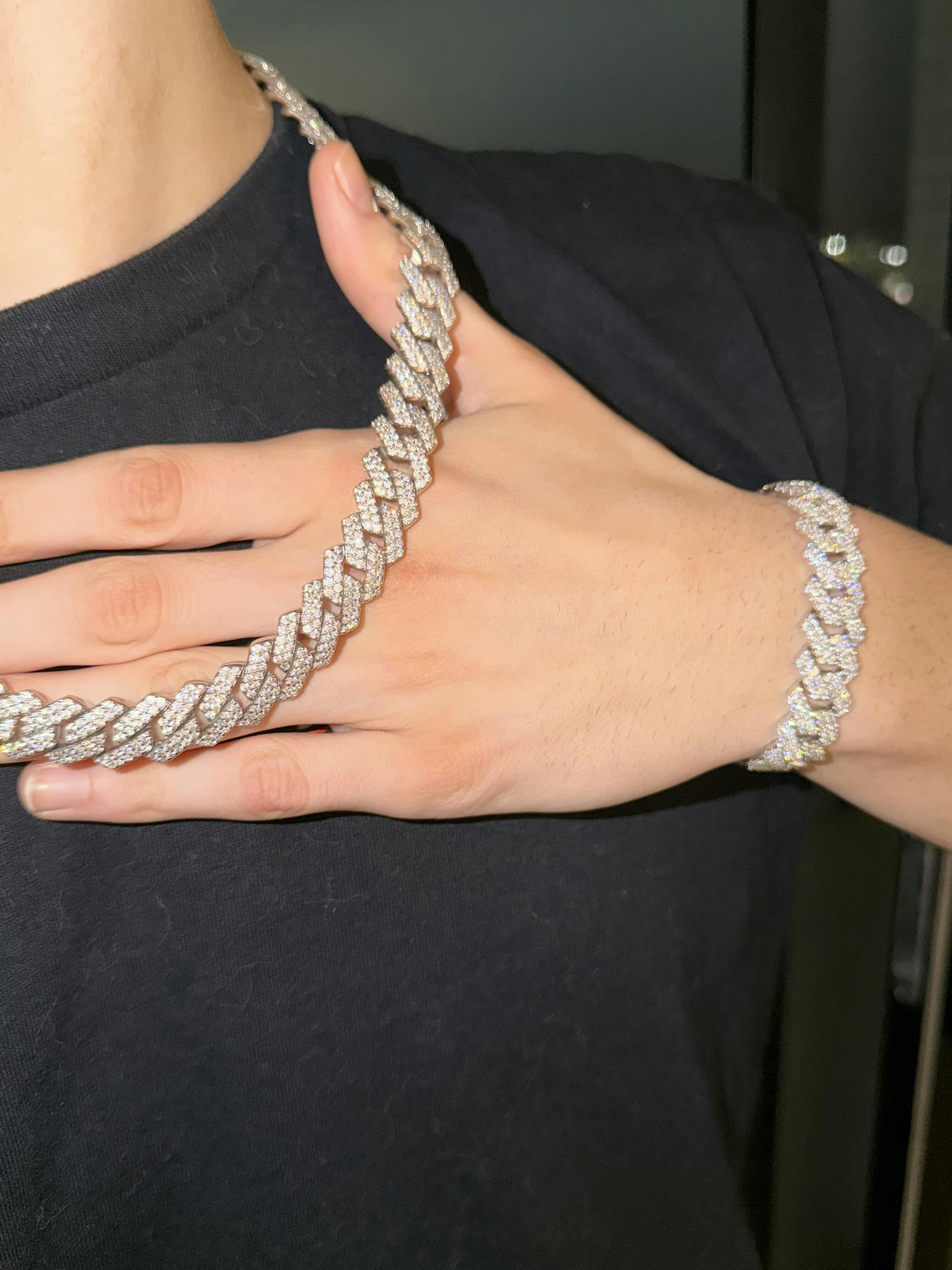Level up your look this Black Friday with the Palm Jewellers Iced Bundle — featuring a matching Iced Prong Cuban Chain + Iced Prong Bracelet. Both pieces are custom-designed and molded, with hand-set, prong-lifted Flawless VVS Simulated Stones that deliver next-level shine from every angle. This exclusive Black Friday drop won’t last — secure yours before it’s gone.